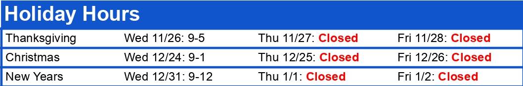 Monday - Friday: